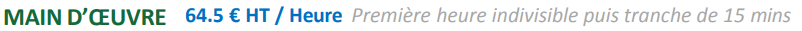 Ces tarifs correspondent aux horaires standard (Lundi au Vendredi de 8h à 18h), hors de ces horaires les tarifs sont doublés.