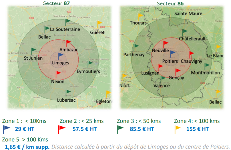 Zone de déplacement et tarifs