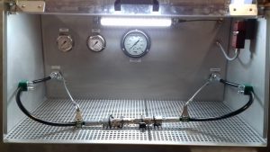 Grâce à cette maquette, il est possible de simuler une fuite et permettre aux opérateurs de s‘exercer à installer la ceinture de détections le plus rapidement possible.