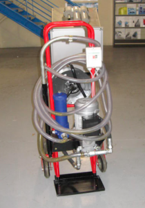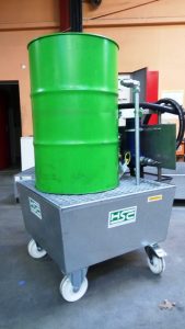 Réservoir 200L sur goulotte de rétention avec roulettes